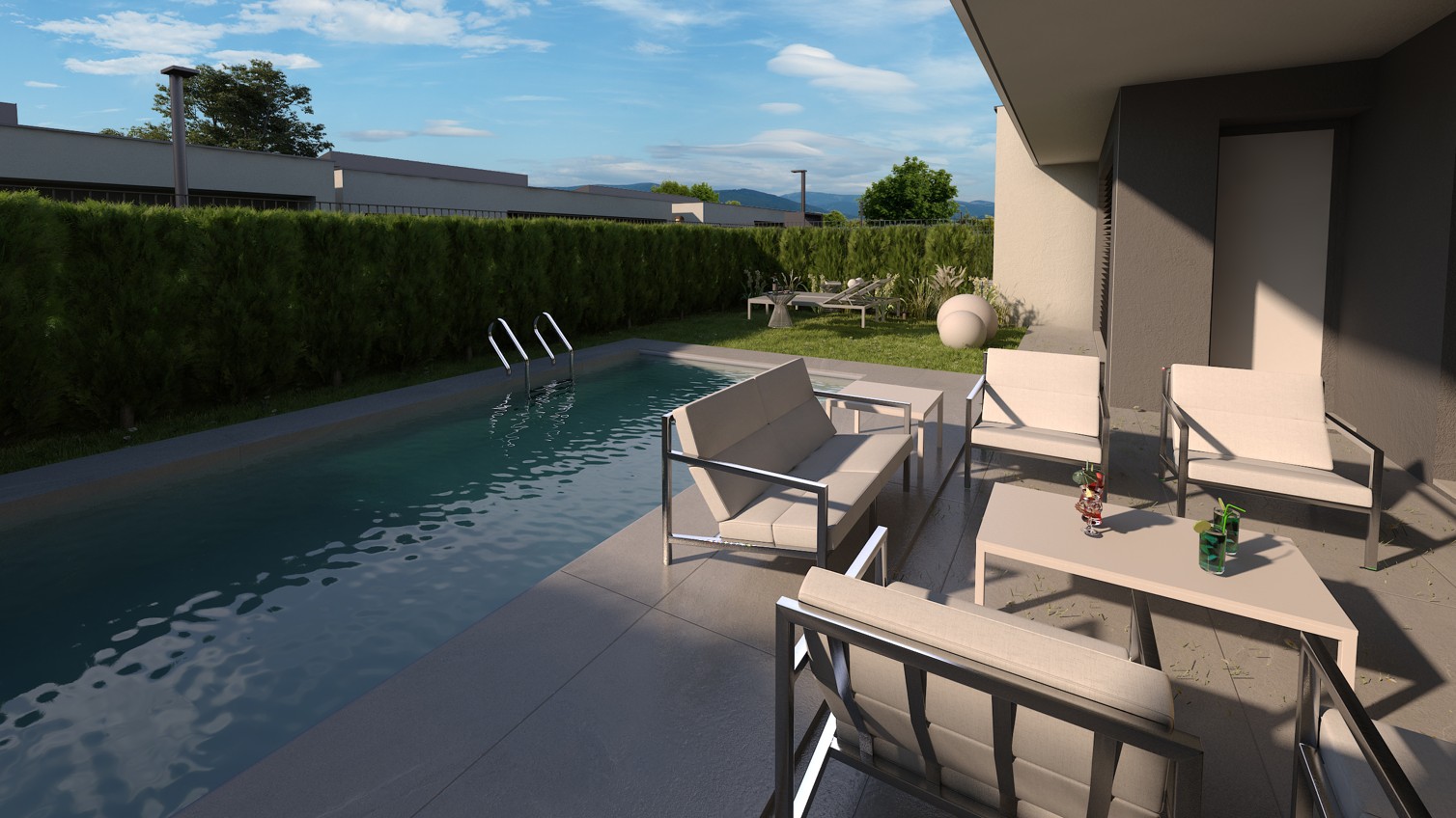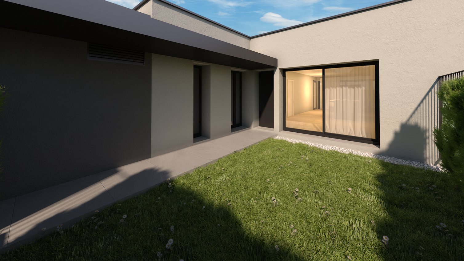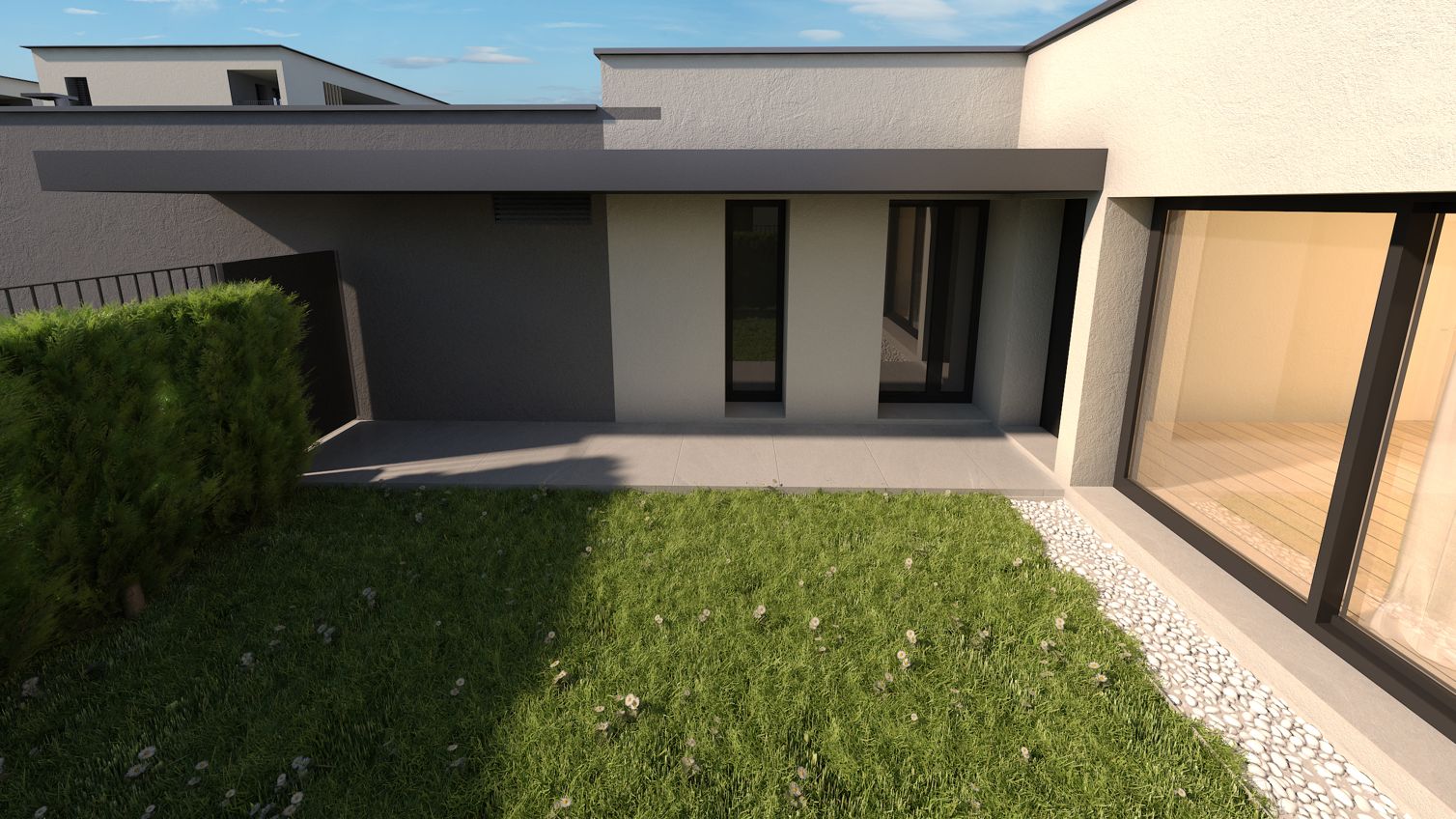 Villino situato al piano terra, con ampio giardino e spazio pavimentato esterno.