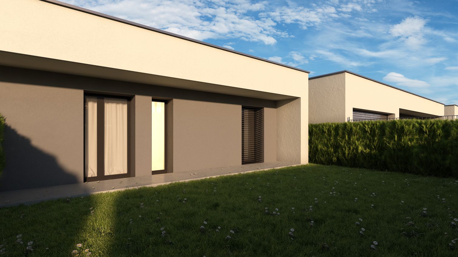 Villa indipendente su unico livello, con ampio giardino, porticato e spazio pavimentato esterno.