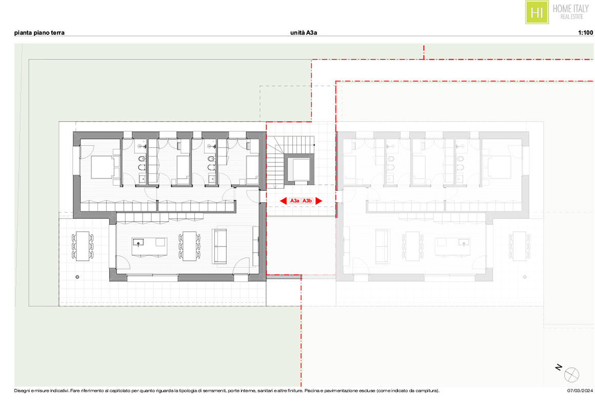 Quadrilocale situato al piano terra, con ampio giardino e spazio pavimentato esterno.